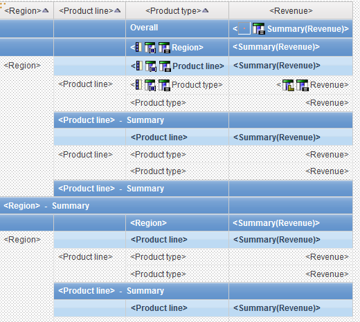 - Click list header & Footers, and then check overall header, region header and product line header. Please note that this structure matches list structure accordingly.